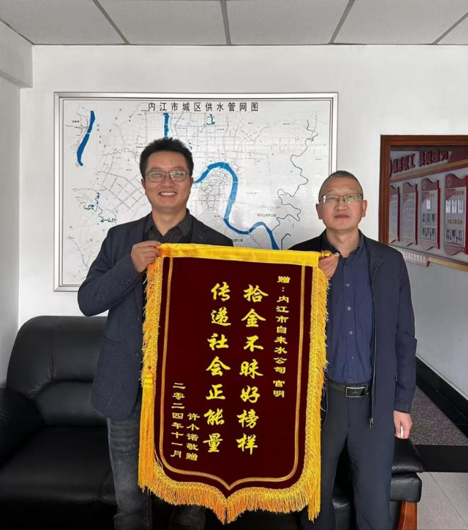 11月2日,市水務公司管網運行部探漏人員官明在匯宇一品片區巡查管線時,突然看到有東西在人行斑馬線上,他撿起來發現是一部新的手機。由于手機設置了密碼解鎖,官明只能將其帶在身上等待失主聯系,以便歸還。失主接過失而復得的手機后感動不已,稱手機里存有大量對自己非常重要的信息,一旦丟失會給自己生活帶來困擾和不便,當即表示要給予官明物質感謝,被官明果斷拒絕。為表達感激之情,失主在11月4日到市水務公司送上了錦旗。